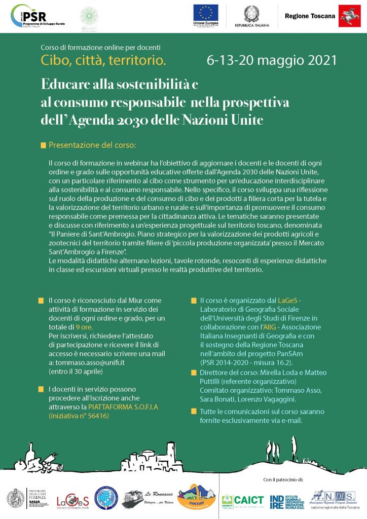 Il corso è organizzato dal LaGeS – Laboratorio di Geografia Sociale dell’Università degli Studi di Firenze in collaborazione con l’AIIG – Associazione Italiana Insegnanti di Geografia e con il sostegno della Regione Toscana nell’ambito del progetto PanSAm (PSR 2014-2020 – misura 16.2).